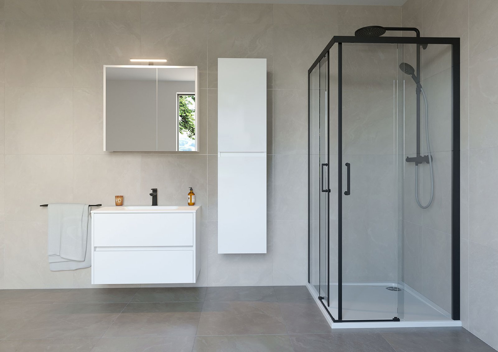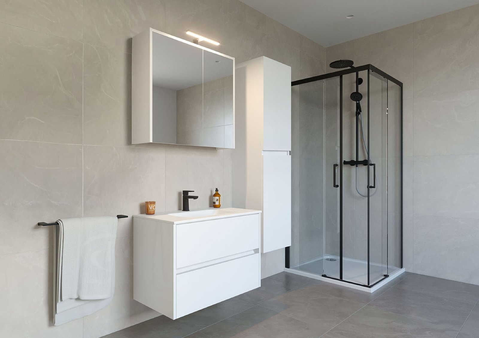 Kupaonska serija Merry u izvedbi MDF bijeli sjaj donosi usklađeno i pregledno rješenje za uređenje kupaonice. Gornji ormarić s ogledalom opremljen je prekidačem i utičnicom za jednostavno korištenje električnih uređaja te integriranom nadogledalnom LED rasvjetom snage 4,4 W i temperature svjetla 4000 K koja osigurava jasno i ujednačeno osvjetljenje. Rasvjeta od kromiranog ABS materijala otporna je na vlagu i jednostavna za održavanje. Donji ormarić s keramičkim umivaonikom pruža praktično i higijensko rješenje za svakodnevnu uporabu, dok ladice omogućuju organizirano odlaganje kupaonskih potrepština. Dostupno u dimenzijama 60, 80, 100 i 120 cm.